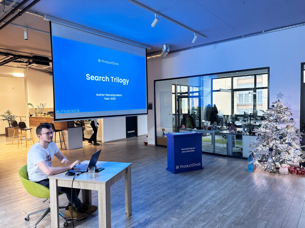 Our software engineer, Nemanja Marić, dedicated his third chapter of the Search trilogy to ElasticSearch, a powerful and widely adopted platform for indexing and searching data. The session explained how ElasticSearch organizes and processes data, highlighted its core features, and discussed practical advantages and limitations.